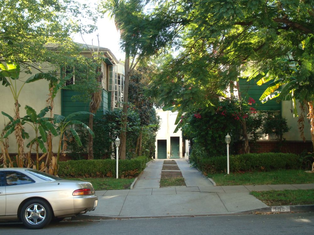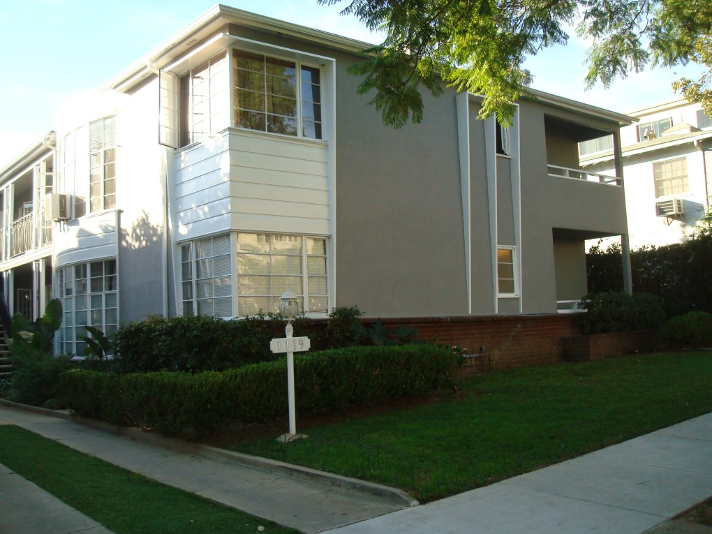 Back in 2009, the building was green and taupe and hadn’t been painted in at least 20 years. It had a ton of overgrown foliage, peeling paint, bars on some windows, rusty security doors on a few units, dirt down the center driveway, and a plethora of opportunity to whip this 1950’s-era building back into shape. We started small by just cleaning up the existing landscaping and then adding some new plants and faux grass down the center driveway.