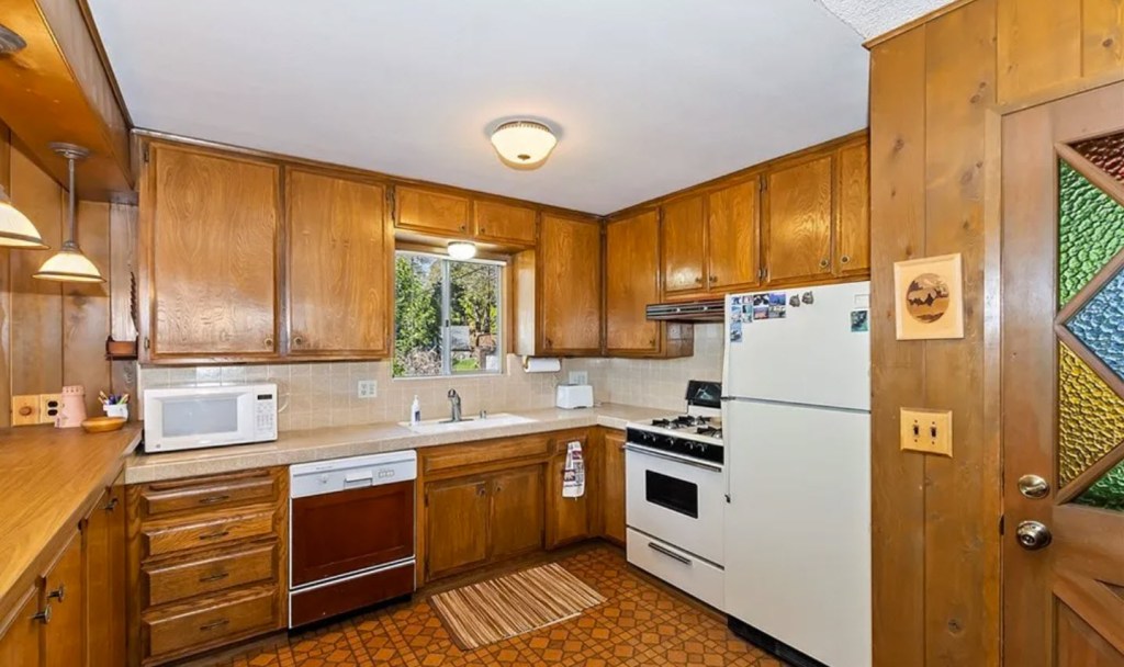 The prow-front floor plan was bright and open and there was enough room in our budget to be able to completely redo the kitchen and baths. The bedrooms were both downstairs and were good sizes. This really was a great house – just not the vibe we were going for. But we felt comfortable enough that we were ready to officially submit our first offer. Our agent called the listing agent and she said, “We already have seven offers so if your client isn’t going to offer $50,000 over ask, don’t even bother.” That was our max budget and would blow our remodel funds out of the water. So the excitement of putting in a real offer and having a real chance of owning a home hustled its way out the door and left that linoleum floor and retro dishwasher behind.