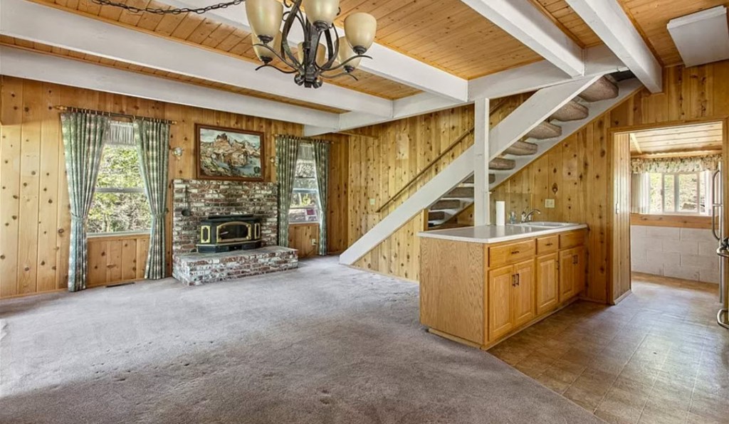 A year into our search and a few broken hearts later, up popped this listing one evening while we were at dinner in Orange County. It was listed at a reasonable price, was in a coveted neighborhood close to the lake, had lake rights (Lake Arrowhead is a private lake), two bedrooms, two bathrooms, good square footage, a deck in the trees, level entry. Wait, why was this priced so well? I immediately text our agent to inquire if the price was a typo. It wasn’t. Ok. Was this our cabin?