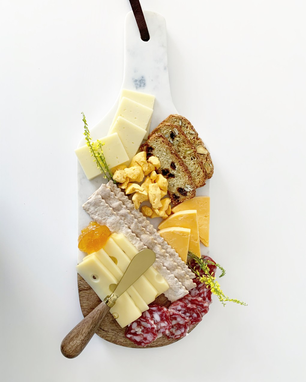 While Brian went one way and grabbed a cute throw embroidered with his last initial, I went the other way and came back with a marble and wood cheeseboard also emblazoned with a matching E. And when we saw what the other picked out, we smiled and kissed because we’re both that cheesy. (OMG, I didn’t even mean for that to be a pun while shopping in a cheese store.)