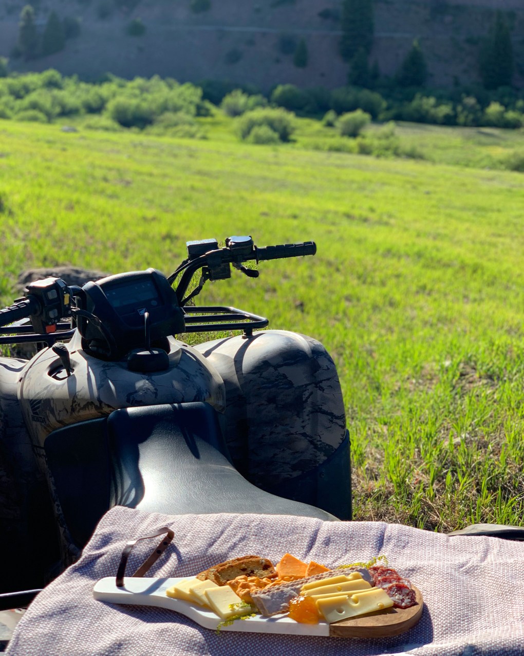 With our personalized blanket and cheeseboard, we knew exactly what we wanted to do with them: an ATV ride to our favorite mountain meadow for a sunset picnic.