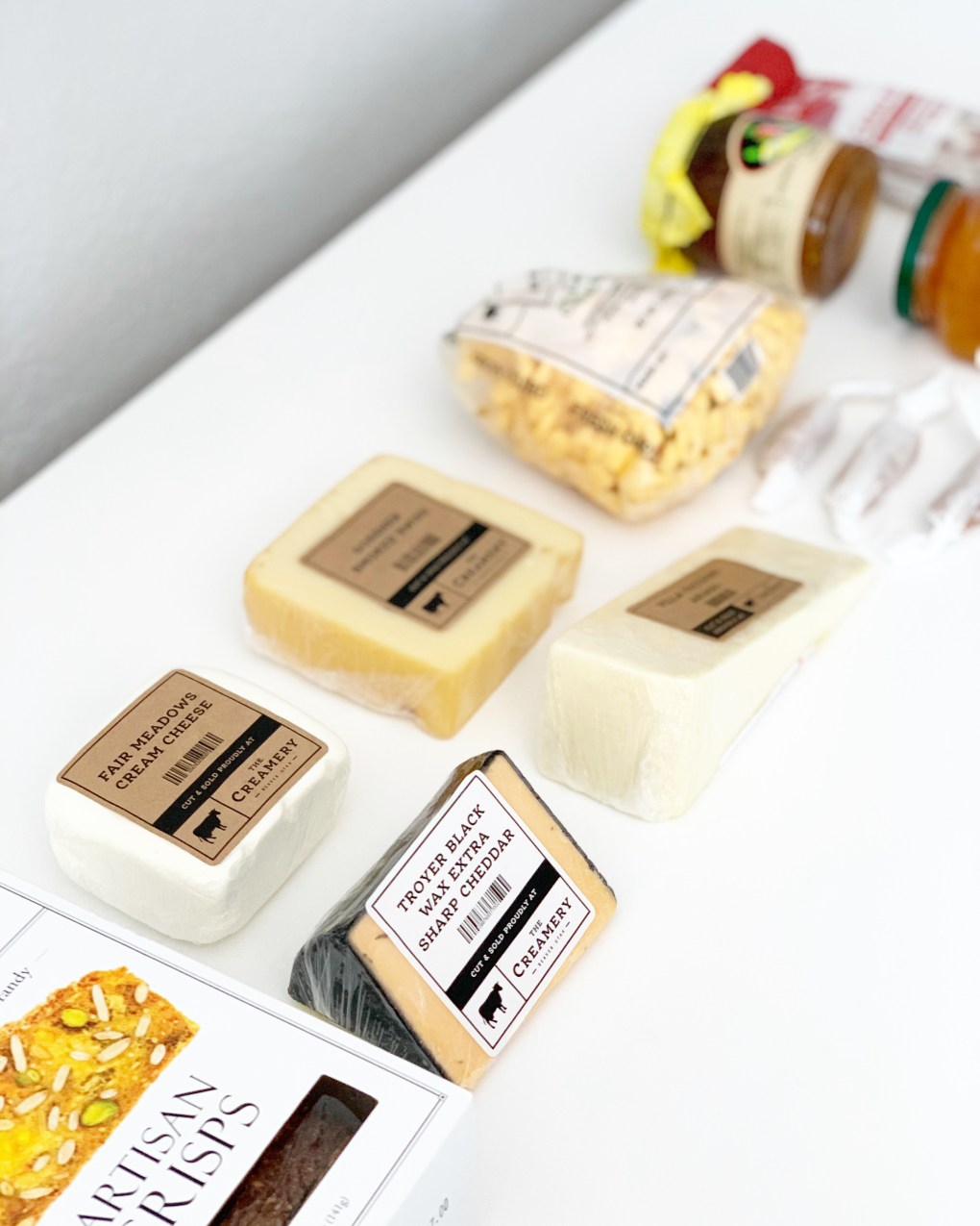 We selected Fair Meadows cream cheese, Troyer black wax extra sharp cheddar, Gossner smoked swiss, Villa Frizzoni asiago, and jalapeno cheese curds. If you’ve never tried cheese curds, stop what you’re doing and order some right now. Then, thank us later.